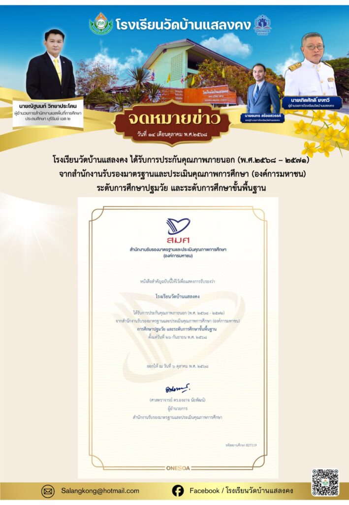 ประกาศผลการประกันคุณภาพภายนอก (พ.ศ.๒๕๖๘ – ๒๕๗๑)
