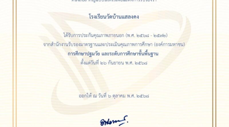 ประกาศผลการประกันคุณภาพภายนอก (พ.ศ.๒๕๖๘ – ๒๕๗๑)