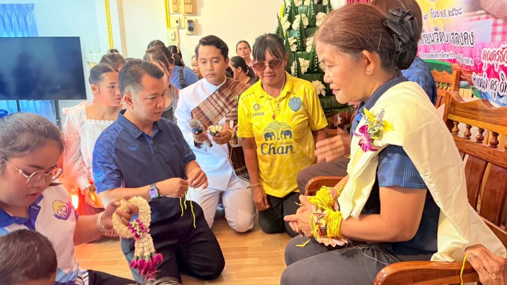 พิธีมุทิตาจิต แด่ครูผู้เกษียณอายุราชการวันที่ 19 กันยายน 2568 โรงเรียนวัดบ้านแสลงคง นำโดย นายธนกร สร้อยสวรรค์ รองผู้อำนวยการโรงเรียนวัดบ้านแสลงคง รักษาการในตำแหน่งผู้อำนวยการโรงเรียนวัดบ้านแสลงคง พร้อมด้วยคณะครูและบุคลากรทางการศึกษา ได้จัดพิธีแสดงมุทิตาจิตแด่ คุณครูธัญลักษณ์ อินสุวรรณ์ ผู้เกษียณอายุราชการ โดยมีคณะผู้บริหาร คณะกรรมการสถานศึกษา คณะครูและบุคลากรทางการศึกษา ศิษย์เก่า และแขกผู้มีเกียรติ มาร่วมแสดงมุทิตาจิต ยกย่องในคุณงามความดี ความวิริยะ อุตสาหะ และความเสียสละที่ท่านได้อุทิศตนเพื่อการศึกษาตลอดระยะเวลาราชการที่ผ่านมา บรรยากาศภายในงานเต็มไปด้วยความอบอุ่นและความซาบซึ้งใจภาพเพิ่มเติม